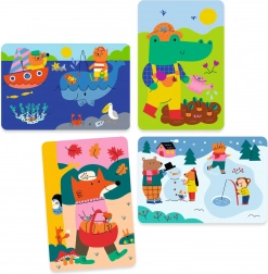 A szett 4 erős lapot tartalmaz vidám állatokkal tavaszi, nyári, őszi és téli tevékenységekben. Tökéletes az évszakok megismeréséhez és közös beszélgetésekhez.