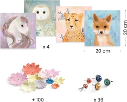 Ez a DJECO képzőművészeti készlet örömteli alkotást és büszkén kiállítható kész műveket kínál a gyerekeknek. A különféle formájú papírlevelek és a fényes, gyöngyházfényű elemek kombinációja minden motívumnak egyedi megjelenést és gyönyörű hatást ad.