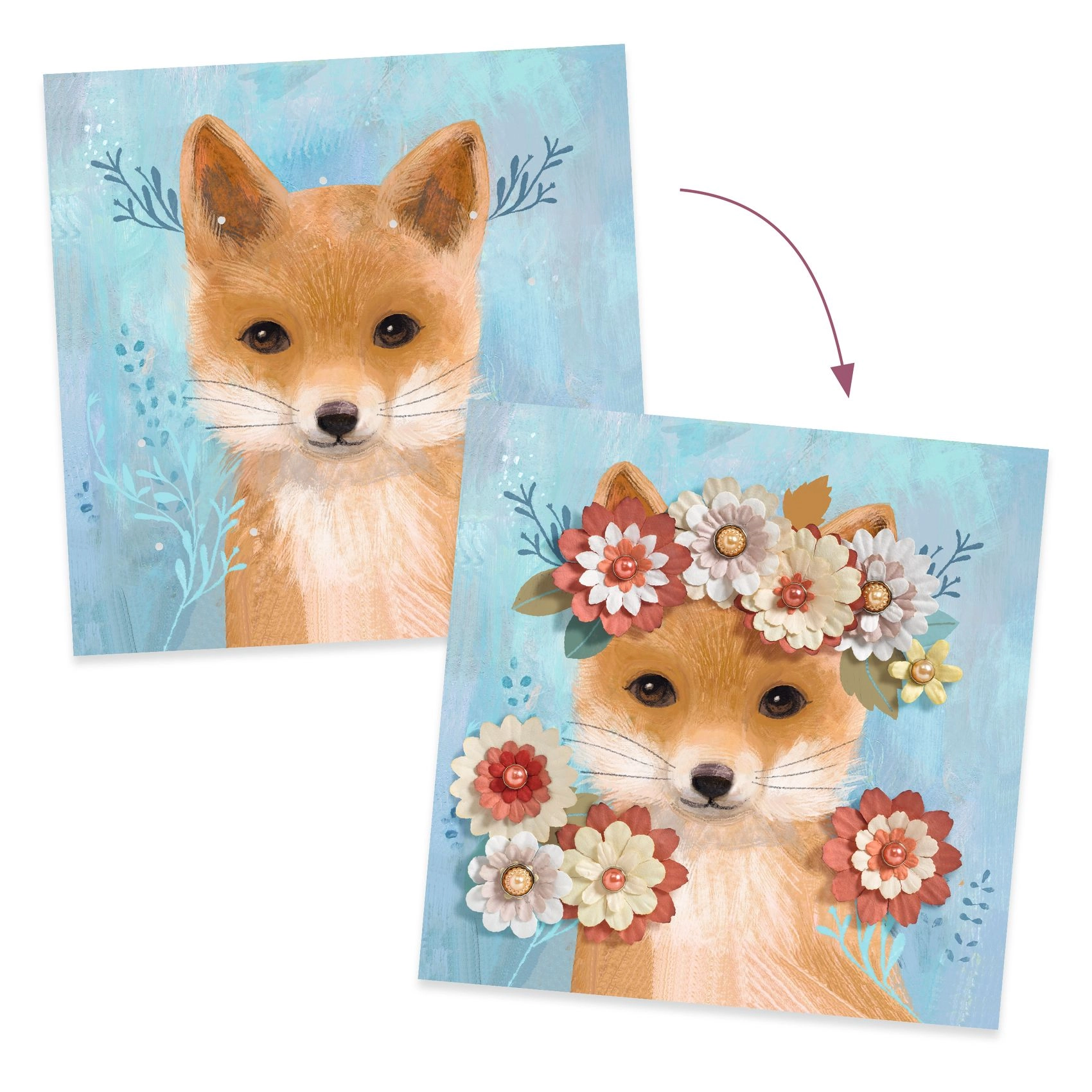 Fedezd fel a DJECO kreatív szettjét, amellyel négy varázslatos, virágkoszorúkkal díszített állatos kép készül. A papírból készült levelek és a gyöngyházfényű összekötő elemek fejlesztik a finommotorikát, a kreativitást és a szín- és kompozícióérzéket. Ideális ajándéknak és közös alkotáshoz a szülőkkel.
