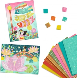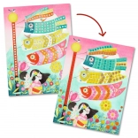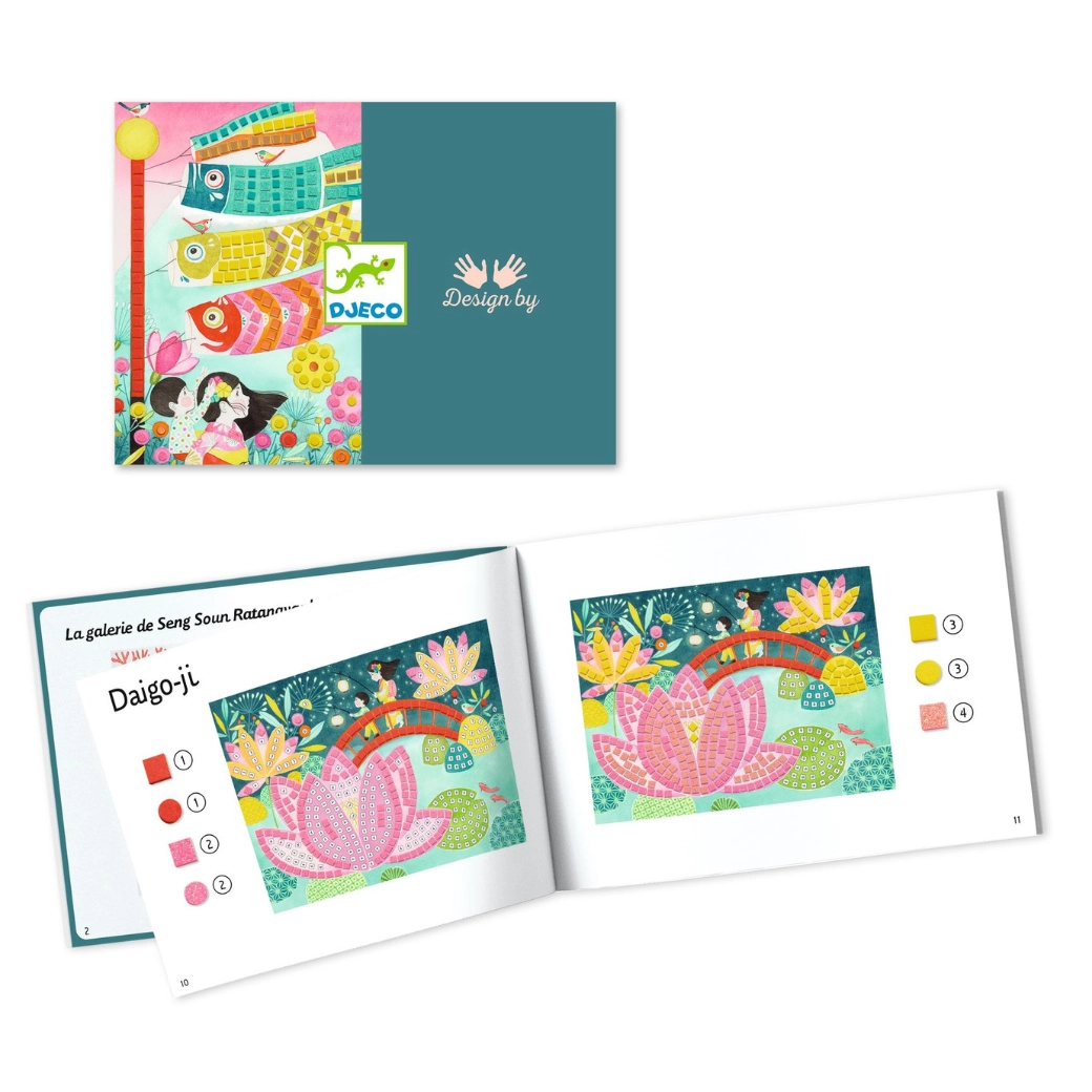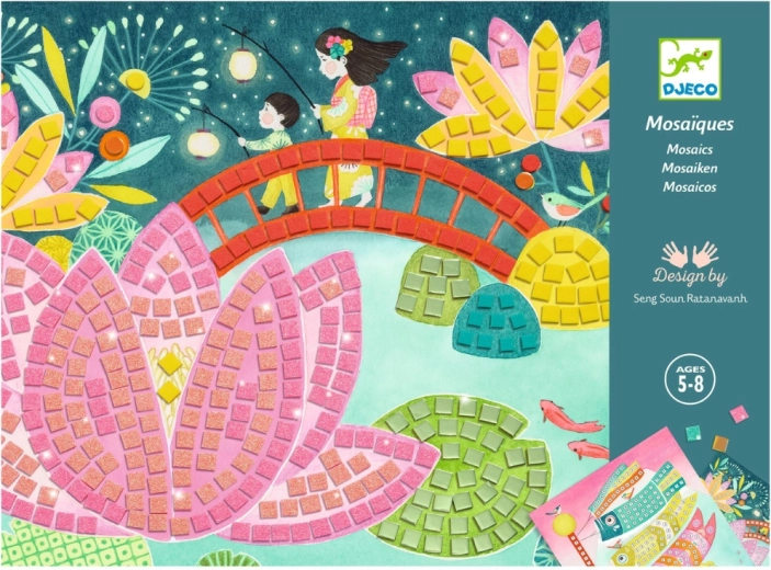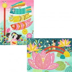 Ez a szórakoztató mozaikkészlet japán motívumokból merít – a színes pontyszélforgóktól a nyugodt, lótuszos jelenetekig. A gyerekek egyszerűen a számok és formák szerint párosítják az öntapadó elemeket, így hatásos, csillogó képeket alkotnak. A kész művek remek díszei lehetnek a gyerekszobának.