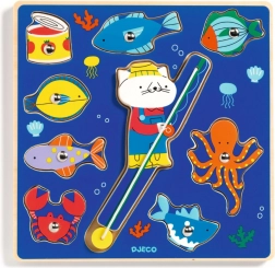 A Djeco Horgászat bedugós puzzle ideális első puzzle a legkisebbeknek. A nagy, masszív, sima felületű darabok jól kézre állnak és könnyen illeszthetők az előre kialakított formákba. A vizuálisan vonzó halacskák és a víz alatti világ illusztrációi motiválják a gyerekeket az ismételt játékra.