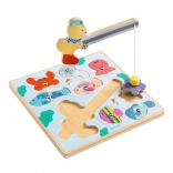 Fedezze fel a lebilincselő játékot, amely egyesíti a beillesztős puzzle-t és a mágneses horgászatot egyben. Minden halacskának megvan a maga formája és helye, ahová tartozik, a gyermek pedig mágneses bottal „kihalássza” és a megfelelő helyre illeszti. A játék fejleszti a finommotorikát, a logikus gondolkodást, valamint a formák és színek felismerését.