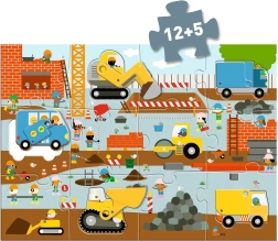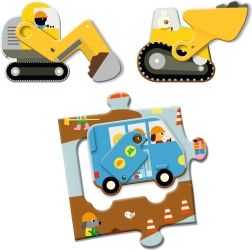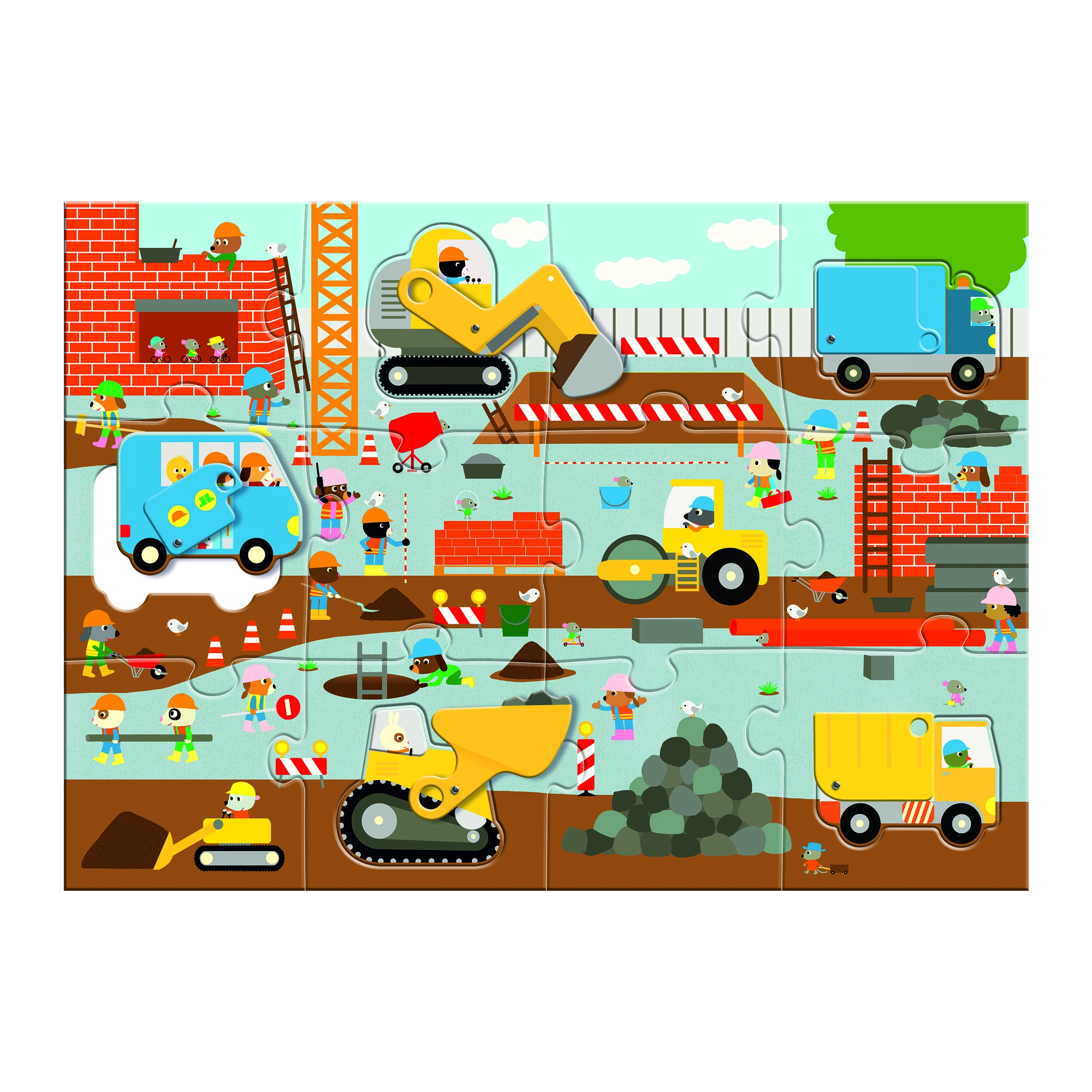 A Djeco Építkezés interaktív kirakója egyesíti az építést és a játékot. A kép összeállítása után a gyerekek „életre kelthetik” az építkezési jelenetet a mozgatható elemeknek köszönhetően – a markoló felrakja a földet, a teherautó elszállítja, és a munka kezdődhet. A nagy és masszív darabok könnyen megfoghatók, és kis gyerekkézhez lettek tervezve.