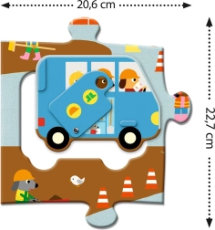A készlet támogatja a motorika, a szem–kéz koordináció és a logikus gondolkodás fejlesztését. A minőségi kivitelezés és a vonzó illusztrációk motiválnak a felfedezésre és az ismételt kirakásra. Remek választás első nagyobb kirakónak az építőgépek rajongóinak.