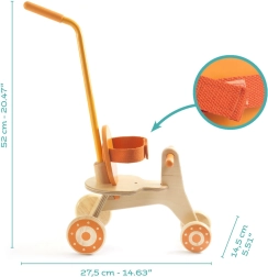 Ez a bájos háromkerekű babakocsi remek kiegészítő a gyereksarokba. A gyerekek rengeteg mókát találnak benne kedvenc babájuk tologatásakor, miközben fejlődik a finommotorika, a képzelőerő és a szociális készségek. Masszív kivitelezése miatt mindennapos játékra is alkalmas.