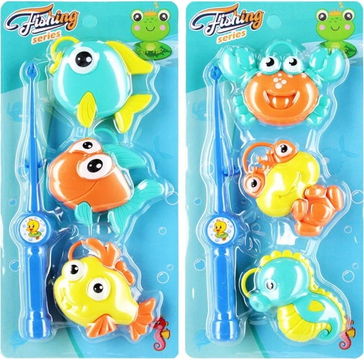 - 1× gyermek horgászbot, 3× halacska (vegyes színek)