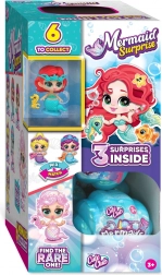 Az összecsukható kagyló alakú csomagolás 3 meglepetést rejt, amelyek bővítik a sellők világát és támogatják a gyűjtőszenvedélyt. A haj-, korona- és farokszínek átgondoltan harmonikusak – például kék hajú sellő rózsaszín farokkal, vagy sárga hajú lila farokkal és tengeri motívumos koronával.