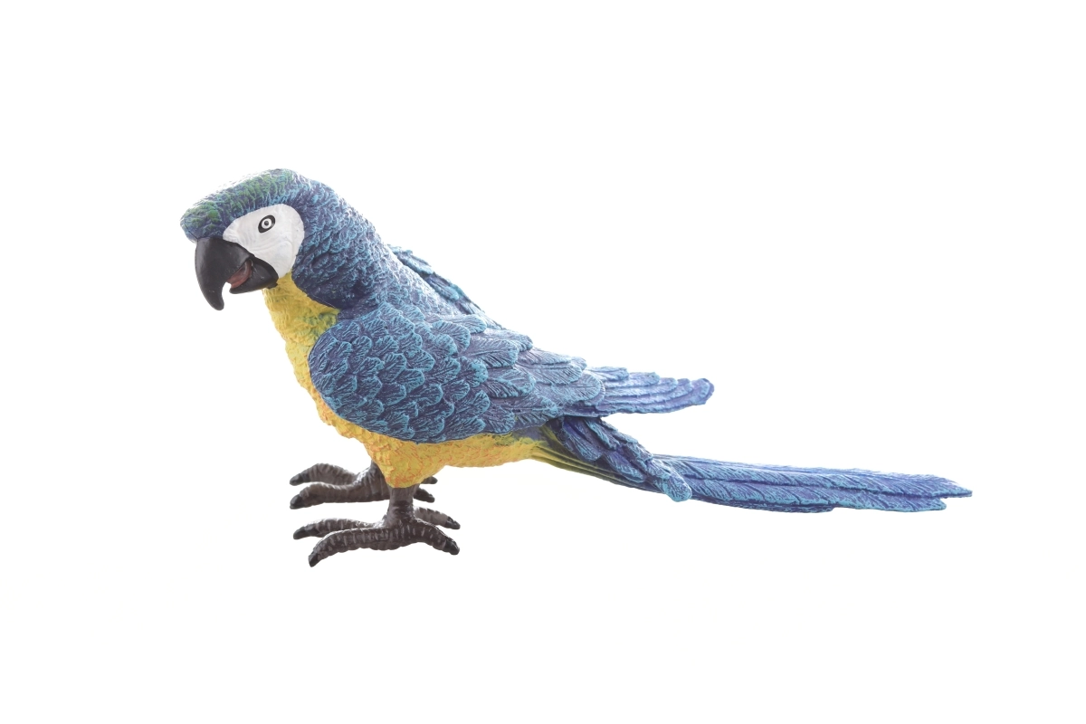 Ez a gondosan kidolgozott műanyag papagájfigura, melyet a kék-sárga ara ihletett, lenyűgöz élénk kék-sárga színével, hosszú farkával és élethű tollfelületével. Ideális gyerekszobába, iskolai projektekhez vagy stílusos lakásdekorációként.
