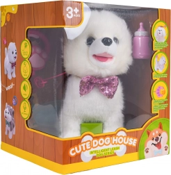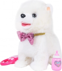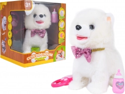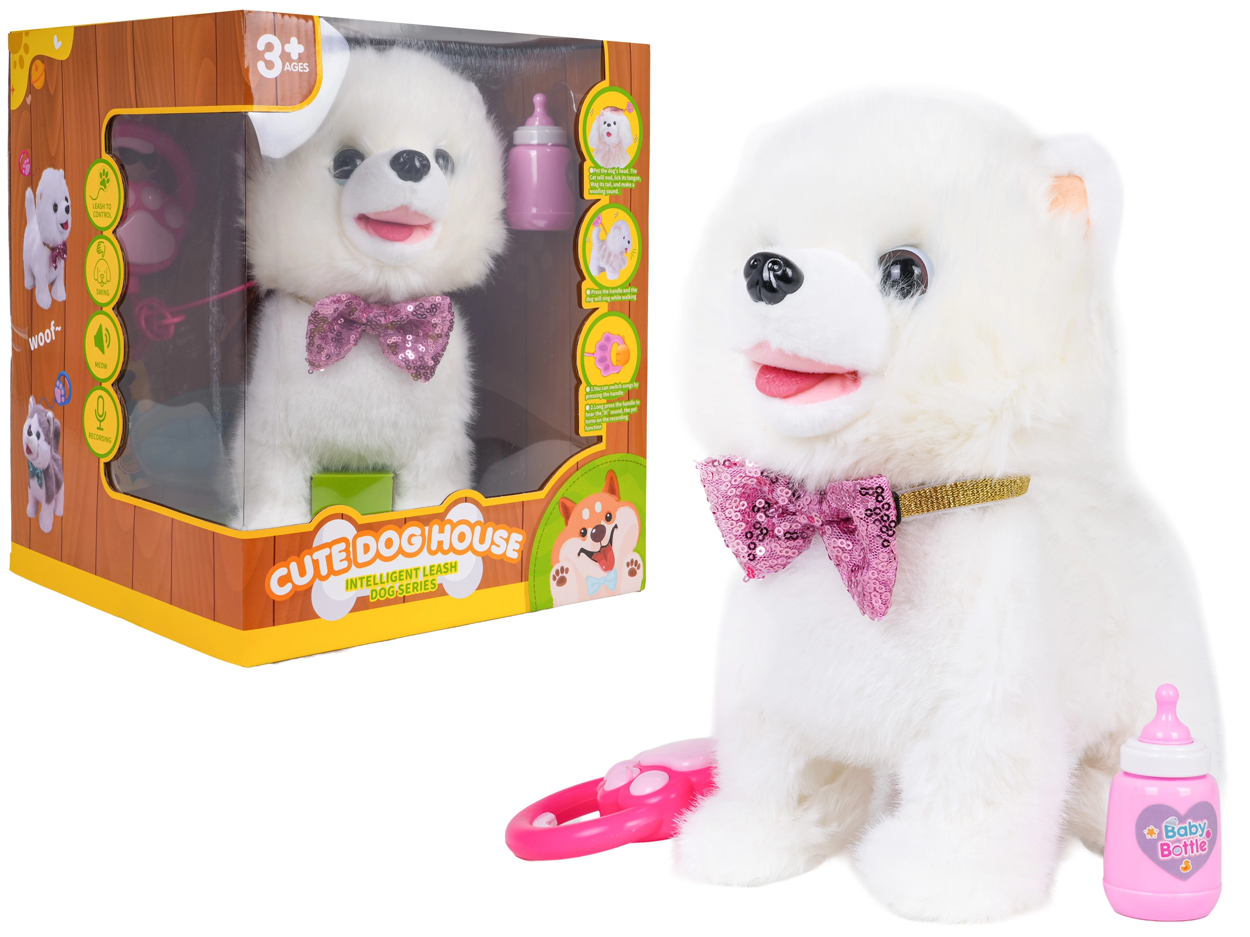 Interaktív plüss fehér kutyus pórázzal és cumisüveggel