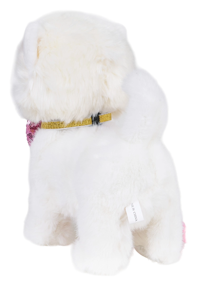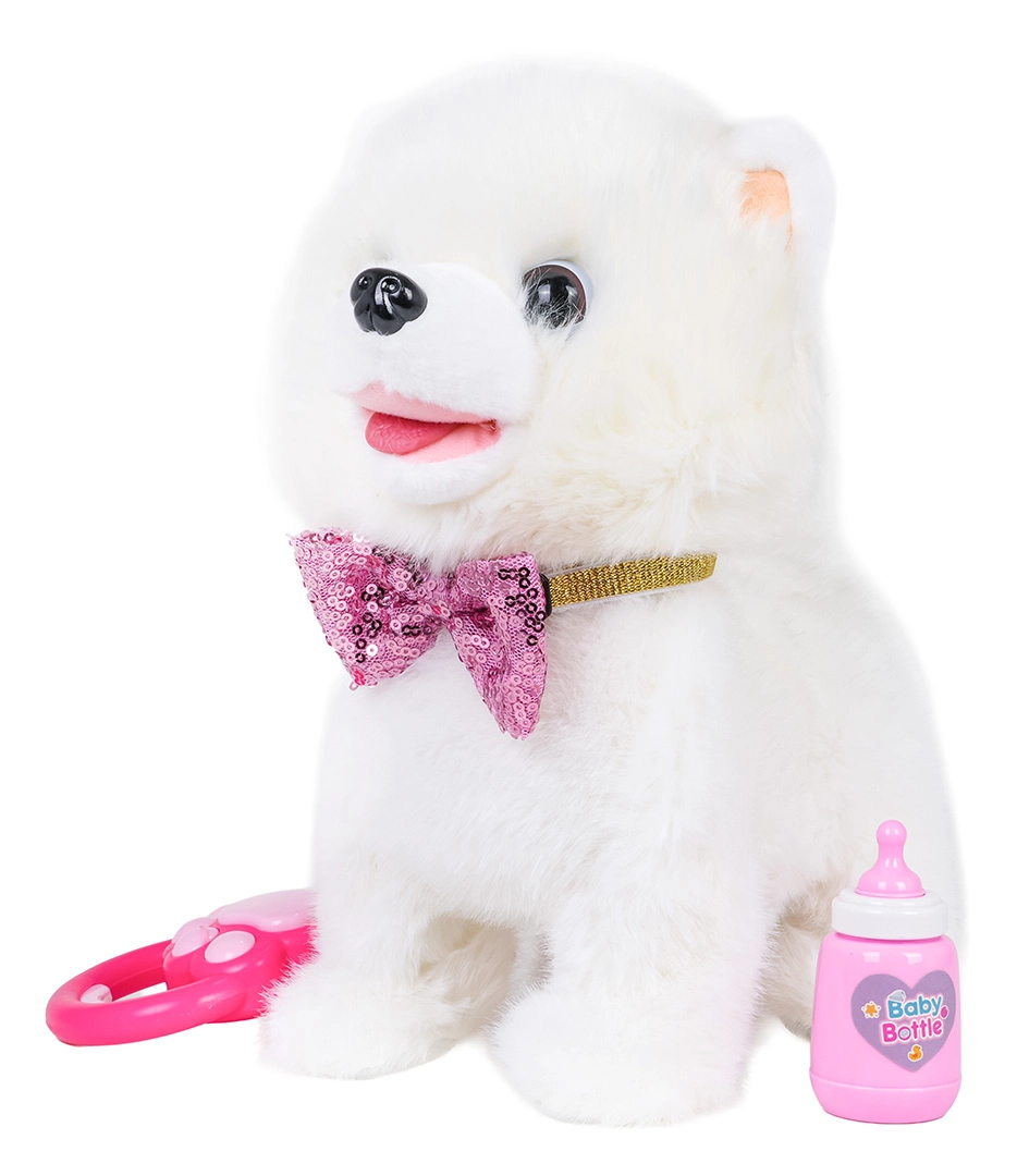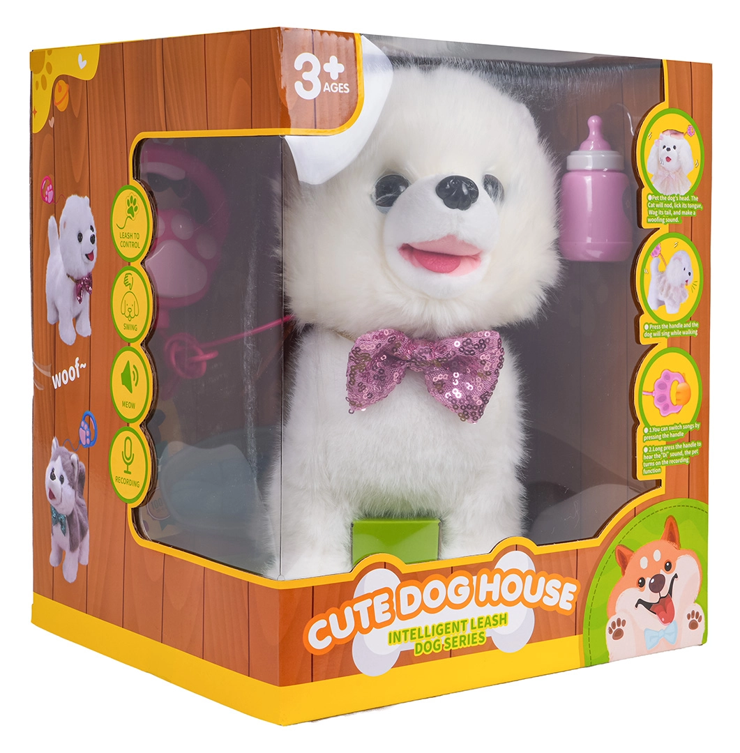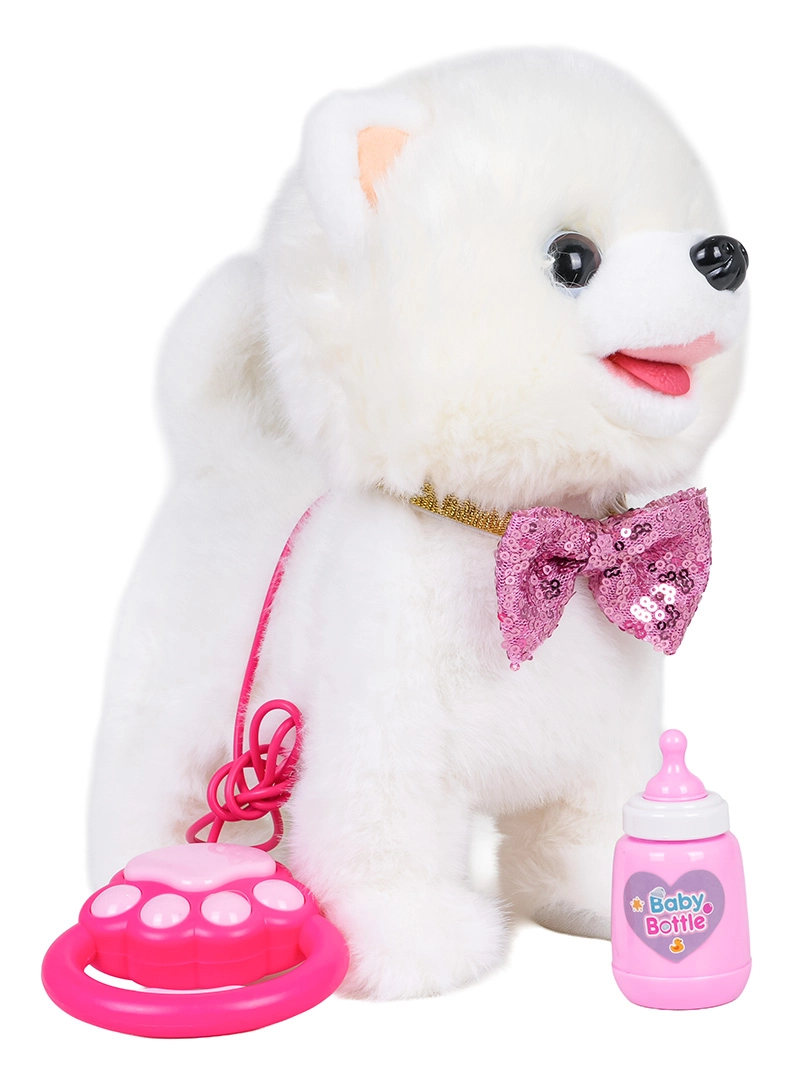 Aranyos, fehér interaktív kutyus 3 éves kortól, rengeteg játékkal és ölelgetnivalóval. Puhább, biztonságos anyagokból készült, tud járni, ugatni, csóválni a farkát, bólintani a fejével, sőt nyelvecskével nyalogatni is. A távirányító/póráz gombjára reagál, zenére lépked, és felvétel–lejátszás funkcióval aranyosan megismétli a kimondott szavakat. A csomagban etető cumisüveg is van a még élethűbb játékért.