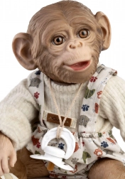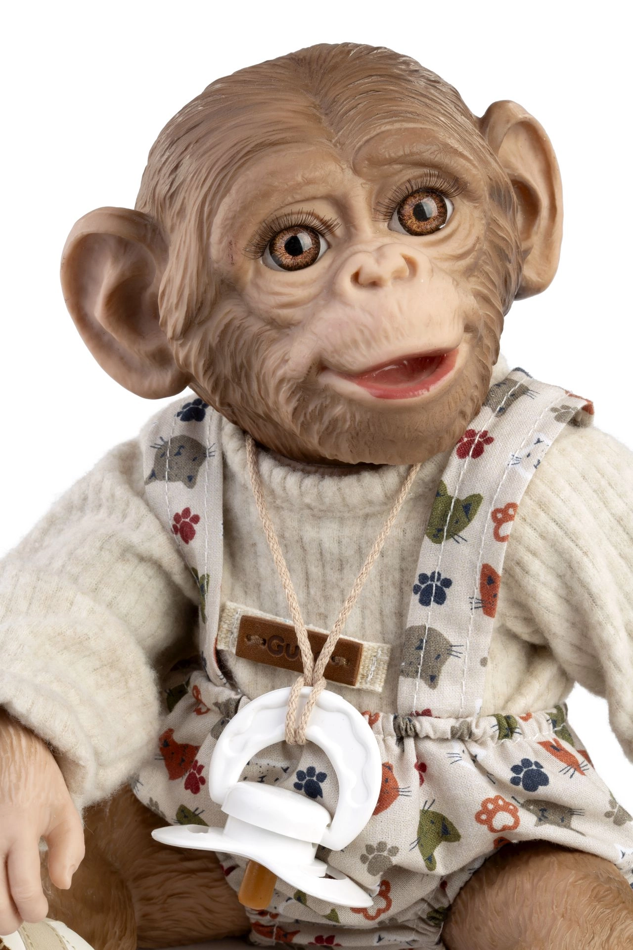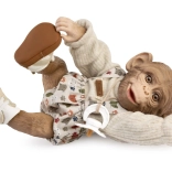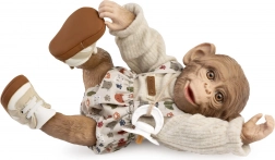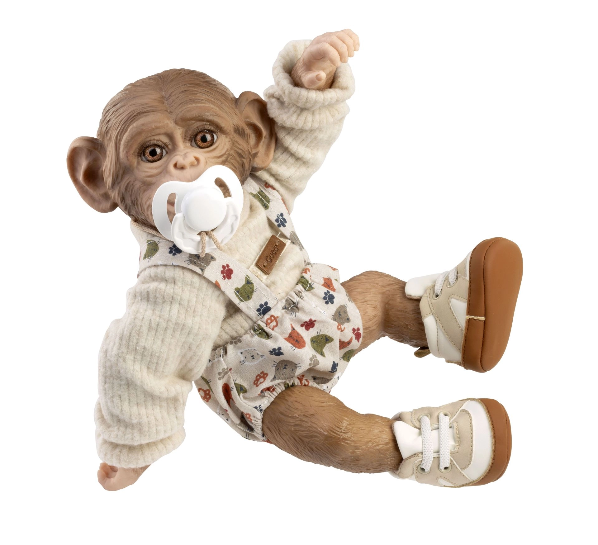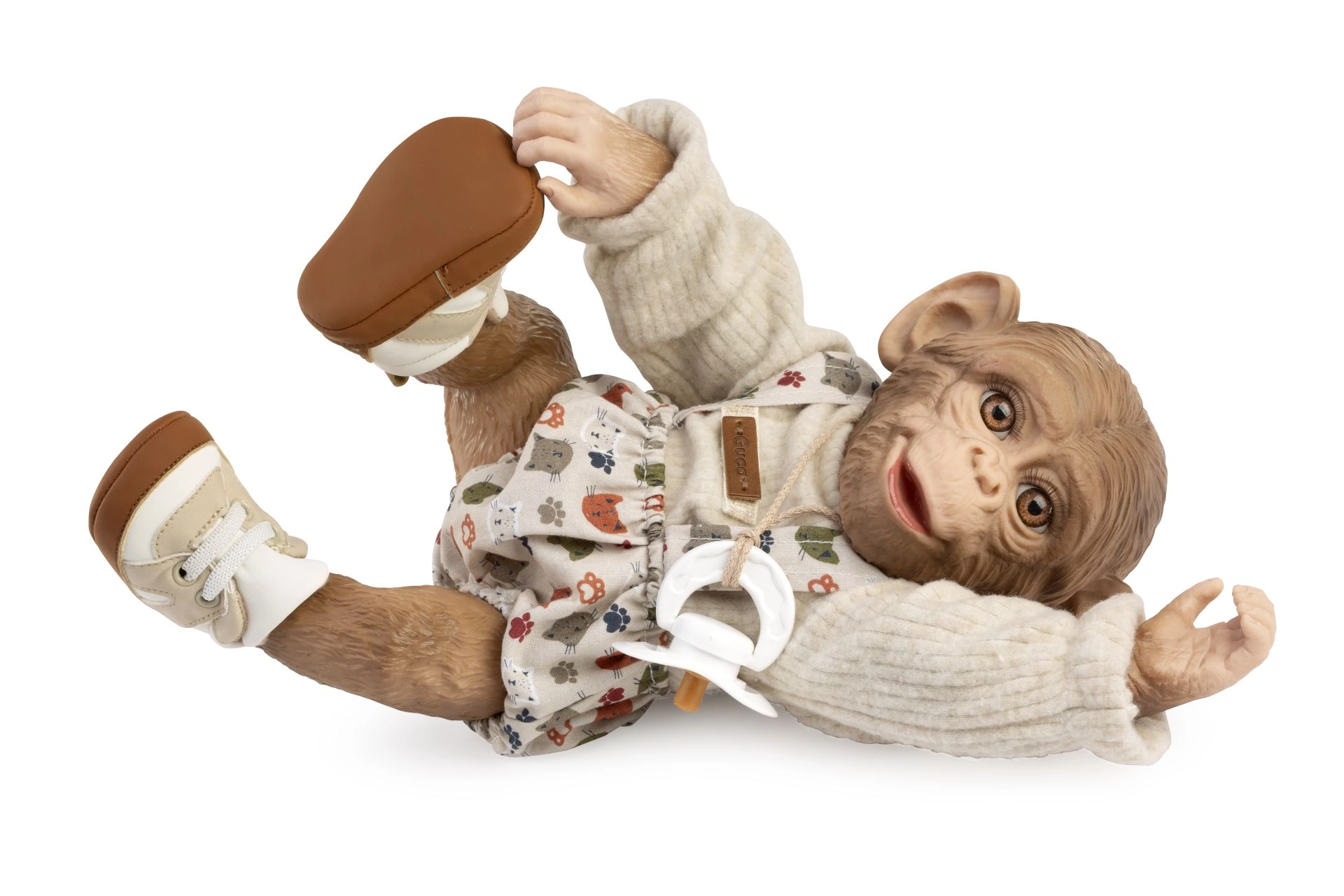 Két ruhadarab és cipőcskék alkotják az összeillő szettet a 32 cm-es REBORN bébi majomhoz – játékra kész már a kicsomagolás után.
