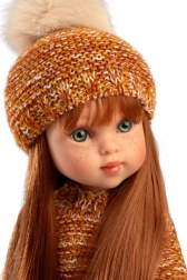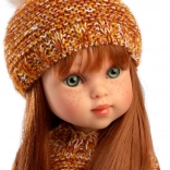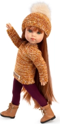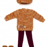 Stílusos, 4 részes ruhaszett a Penelope 34 cm babához: kardigán, sapka, leggings és fűzős műbőr cipőcskék. Kézzel készítve Spanyolországban, nagy figyelemmel a részletekre, ideális őszi és téli összeállításhoz. Könnyű fel- és levétel, minőségi kötött textúrák és élethű kiegészítők a kreatív játékhoz. 3 éves kortól ajánlott.