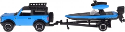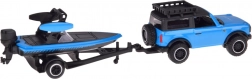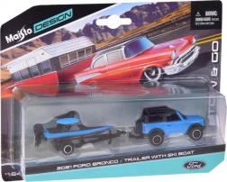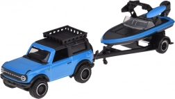 Fedezd fel az off-road ikon és a vízi kaland vonzó kombinációját: a FORD Bronco 2021 1:64 méretarányban elegáns csónakot vontat. A modell kiemelkedik fém karosszériájával, a vonalvezetés precíz kidolgozásával és a kontrasztos kiegészítőkkel, amelyek aláhúzzák a hiteles megjelenést. Az utánfutó és a csónak könnyen leválasztható a még változatosabb játékforgatókönyvekhez.