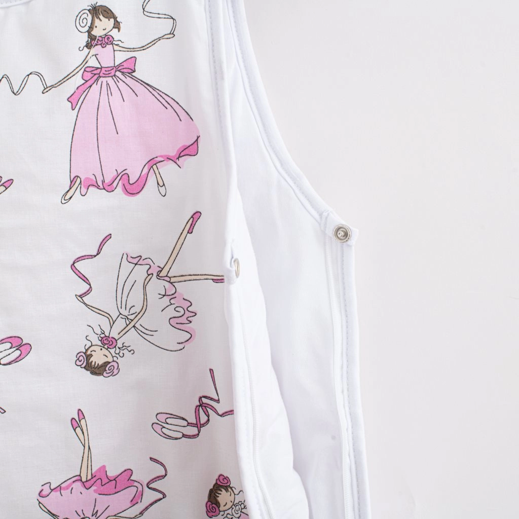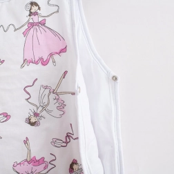 A New Baby Ballerina Bella hálózsák ideális választás kisbabája nyugodt alvásához. A 100% pamut és a könnyű poliészter töltet kombinációja egész éjjel kellemes meleget és légáteresztést biztosít. A táncoló balerinát ábrázoló, bájos minta gyengéd megjelenést kölcsönöz a kiságy számára.