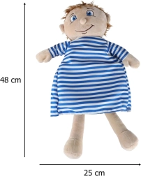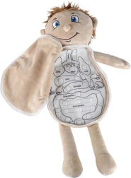 Ez az oktató plüssbaba nyitható pocakkal segít a gyerekeknek játékos és szemléletes módon megérteni az emberi anatómia alapjait. A pocak biztonságos cipzárral könnyen kinyitható, és felfedi a színes, puha szerveket, amelyek tépőzárral rögzülnek az egyszerű kivétel és visszahelyezés érdekében. A baba kellemes tapintású poliészterből készült, és könnyen levehető ruhával van ellátva, amely hátul megkötős.