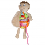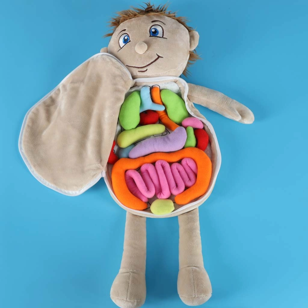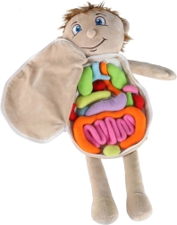 Fedezze fel a szórakoztató és biztonságos módját annak, hogyan ismertessük meg a gyerekeket az emberi testtel. Ez az oktató plüssbaba hasán cipzár található, belül pedig puha, színes szervek vannak tépőzárral rögzítve, amelyeket ki lehet venni és újra a helyükre tenni. Puha poliészterből készült, fejleszti a finommotorikát, a kíváncsiságot és a játékon keresztüli tanulást, 3 éves kortól ideális otthonra, óvodákba és terápiás munkahelyekre is.