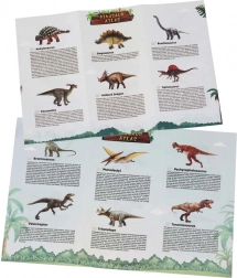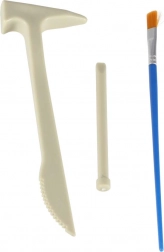 - 1× gipsztojás 12 dinoszaurusz figurával, 1× véső, 1× késes kalapács, 1× ecset, információs kártya (EN), útmutató (PL)