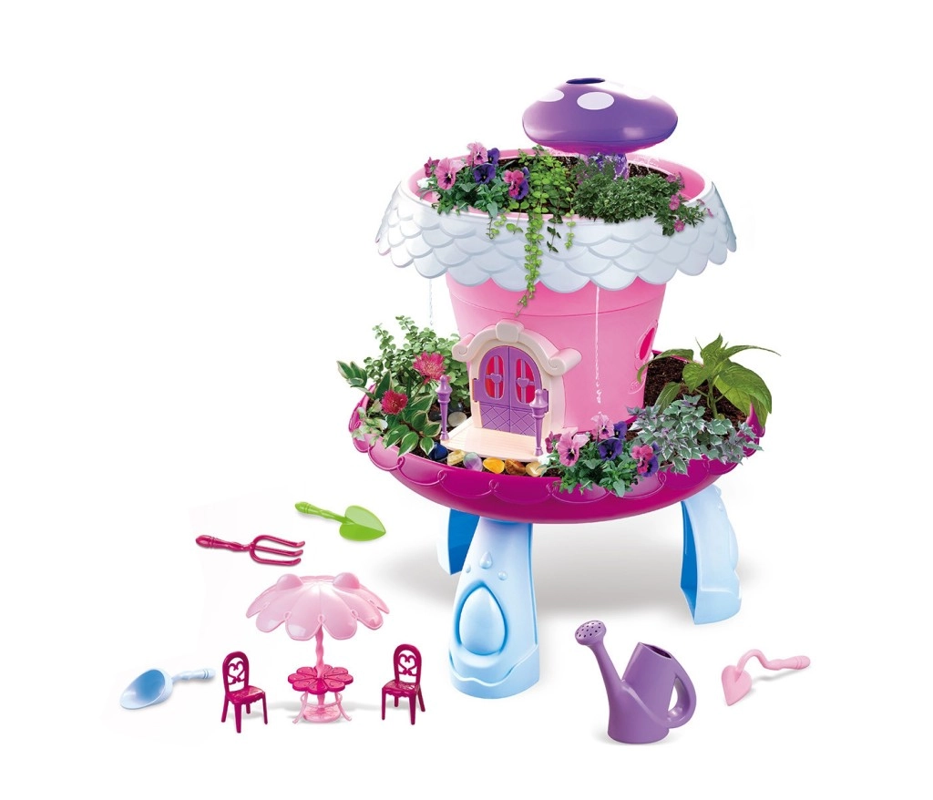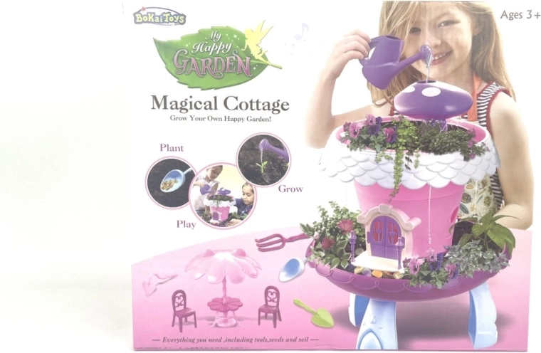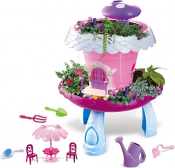 A Kiskert házikóval – vesd el és gondozd egy varázslatos játékszett, amely játékos módon ismerteti meg a gyerekeket a természettel. A virág alakú rózsaszín házikó stabil kék lábakon áll, fehér szegélyű teteje lila szivacsot rejt az egyszerű öntözéshez. Körülötte hely van a virágcserepeknek, hogy a kis kertészek figyelhessék, hogyan nőnek a növényeik.