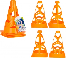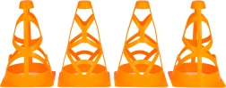 Négy darab narancssárga bója 3 éves kortól gyermekeknek és felnőtt sportolóknak. Könnyűek, egymásra rakhatók, és a feltűnő narancssárga színnek köszönhetően kiválóan láthatók. A nyitott kialakítás rögzítőnyílásokkal szélben is stabilitást biztosít. Alkalmas fociedzésekhez, agility gyakorlatokhoz és zónák kijelöléséhez pályán vagy udvaron.