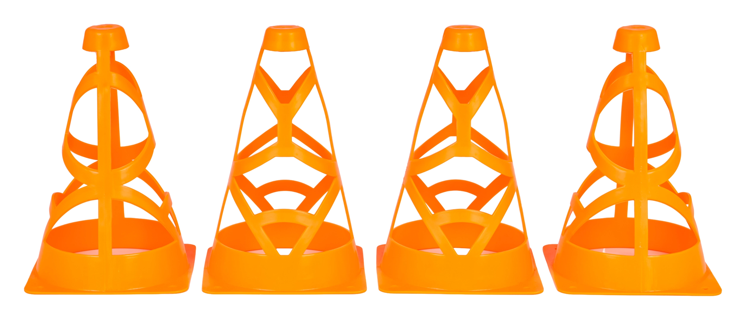 Sokoldalú edző bóják feltűnő narancssárga színben pályák, zónák és akadályok kijelöléséhez játékok és sport közben. Könnyű műanyag kialakításuk miatt egyszerűen hordozhatók, egymásra rakható formájuk pedig helytakarékos tárolást biztosít. A nyitott „rácsos” struktúra és a talp sarkaiban lévő nyílások lehetővé teszik a biztos rögzítést és csökkentik a szélterhelést.