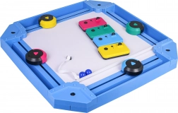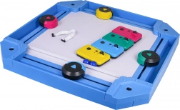 A robusztus műanyag aréna megemelt peremekkel kézben tartja a játékot, a színes korongok és ütőmodulok pedig átláthatóságot és lendületet adnak. A játékelemeket 3,7 V-os akkumulátorok táplálják (a csomagban), a kontrollerek 2× AA 1,5 V elemmel működnek (nem tartozék). Ideális ajándék és remek választás képernyőmentes, aktív szórakozáshoz.