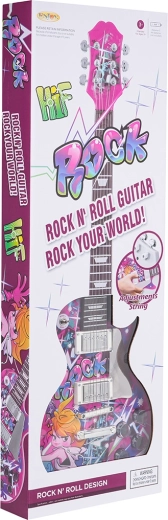 Ez a mutatós, rózsaszín gyerek elektromos gitár úgy lett megtervezve, hogy megjelenésében egy valódi hangszerre emlékeztessen, és motiválja a gyerekeket a zenei kezdetekre. Az áttekinthető kezelőelemekkel a gyerekek könnyedén beállítják a hangerőt, a ritmust és a hangeffekteket, valamint elindíthatnak 8 előre beállított dallamot kíséretként.