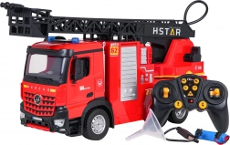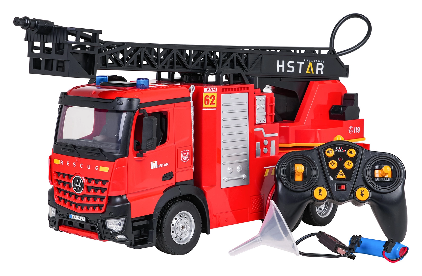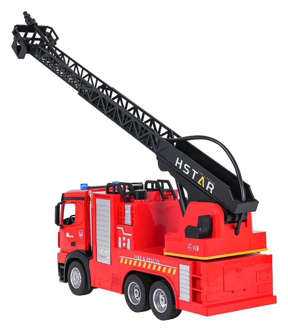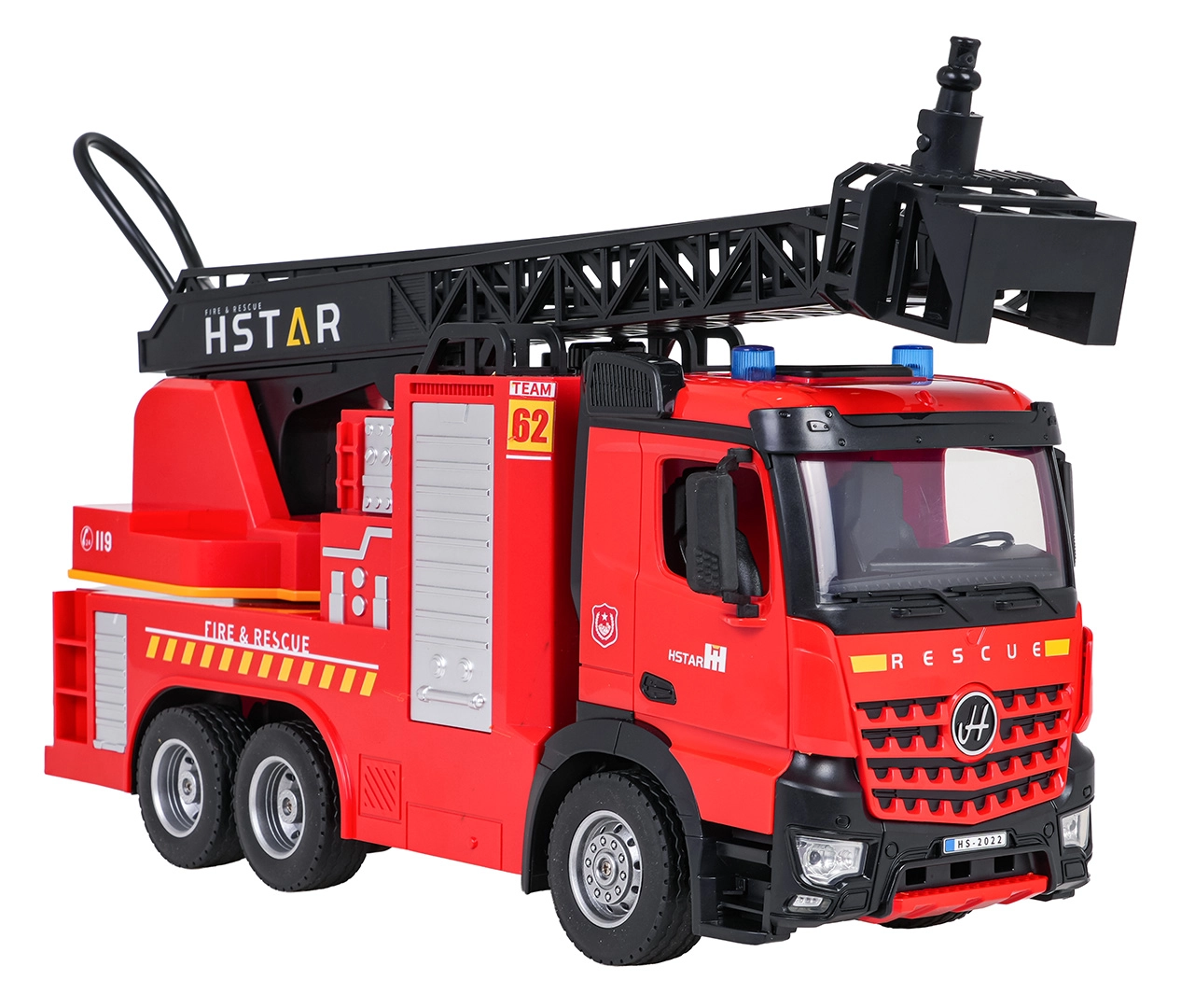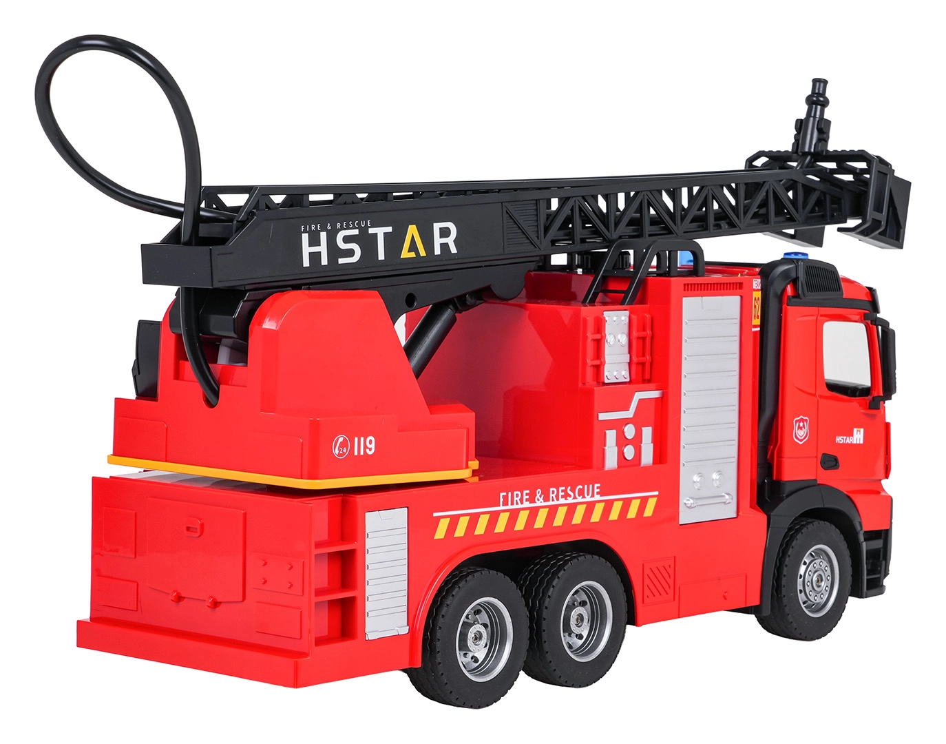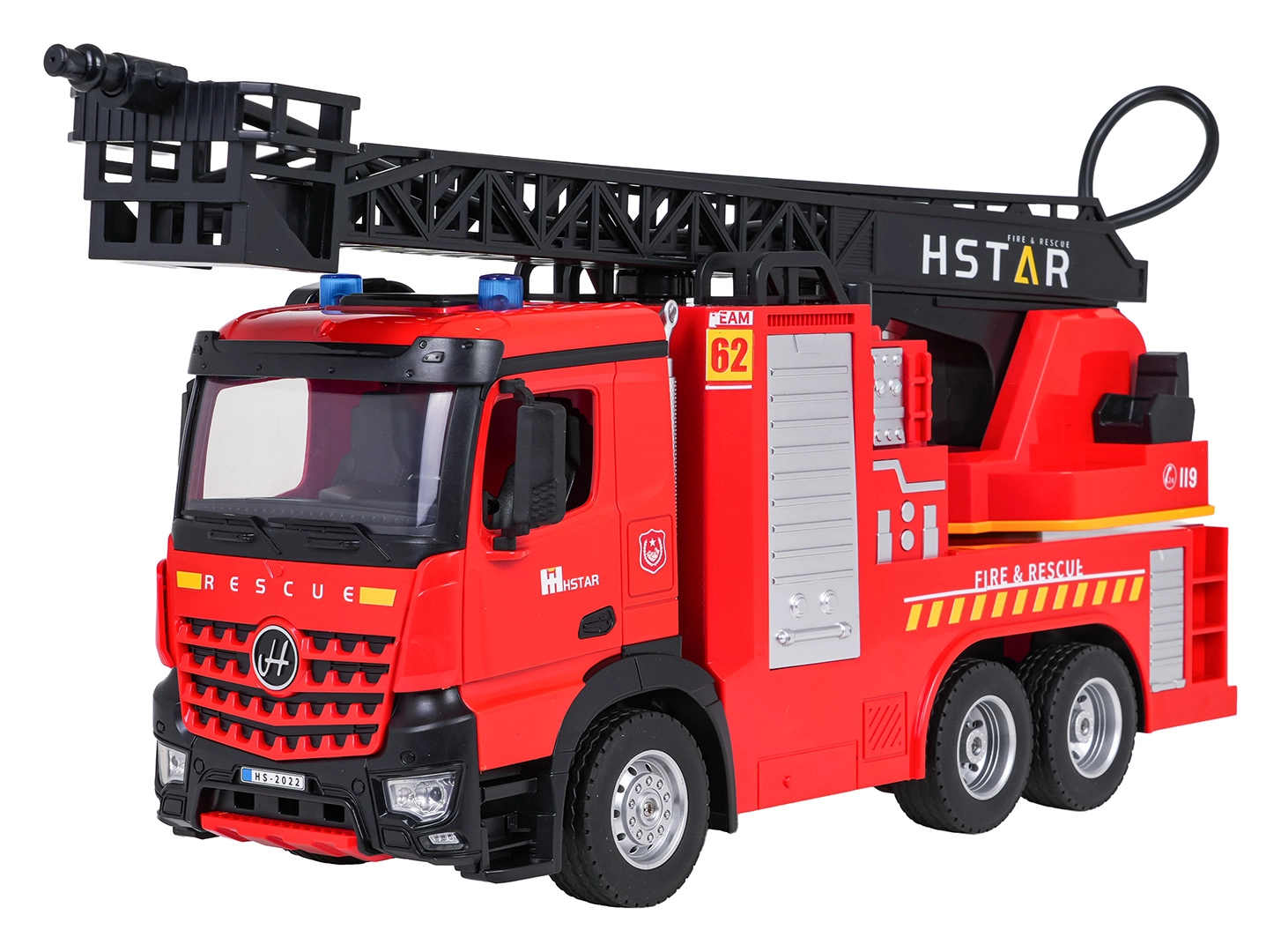 A 6 éves kortól ajánlott, tükörirányítással vezérelt nagy tűzoltóautó kihúzható és forgatható létrát, vízpermet funkciót, 2,4 GHz-es irányítást, valamint fény- és hangeffekteket kínál. A masszív felépítés, a gumibroncsok és a valósághű részletek órákon át tartó akciódús szórakozást nyújtanak otthon és a szabadban egyaránt.