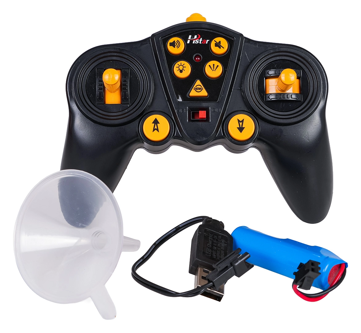 - Tűzoltóautó, 2,4 GHz-es távirányító, 3,7 V-os akkumulátor, USB töltőkábel, pipetta a vízhez