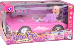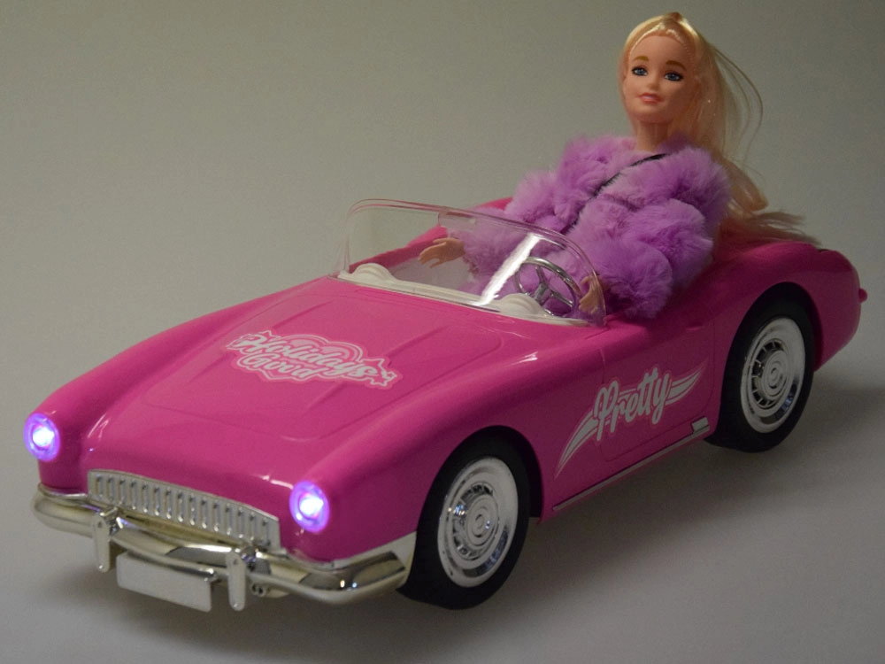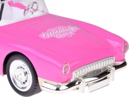Stílusos rózsaszín retro kabrió elegáns babával, amely távirányítós szórakozást, fény- és hangeffekteket, valamint gazdag tartozékokat kínál. A gyerekeket lenyűgözi a kabrió krómozott részletekkel, a előre/hátra haladás és kanyarodás lehetősége, valamint a tölthető akkumulátor USB-s töltéssel.