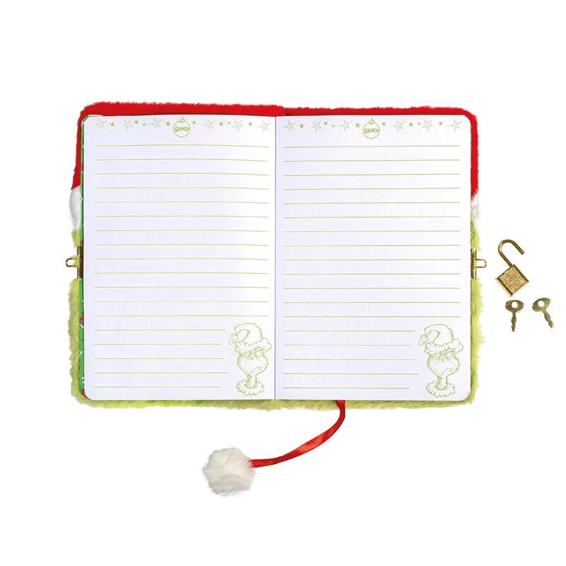 Szerezd meg ezt a stílusos, plüss borítós jegyzetfüzetet feltűnő GRINCH mintával. A5-ös méretének köszönhetően kényelmesen elfér hátizsákban vagy táskában, így mindig kéznél lehet. A két kulccsal ellátott zár megóvja a jegyzeteidet, naplódat és vázlataidat.