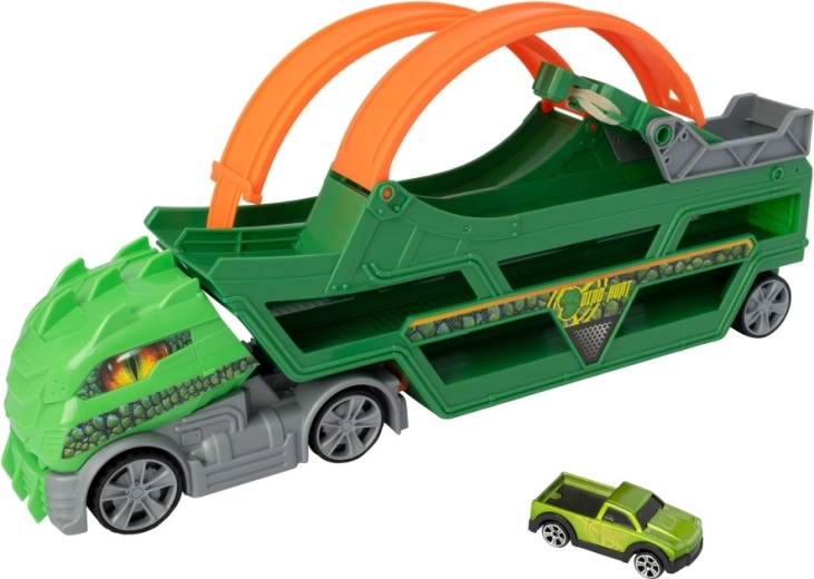Okos kialakításának köszönhetően a szett akár 14 kisautót is tárol, így a gyerekek mindig magukkal vihetik a „flottájukat”. Minőségi műanyag kivitel, dinoszauruszos, „Dino Hunt” feliratú, figyelemfelkeltő dizájn, valamint a mellékelt zöld-fekete színű fém modell teszi tökéletes játékká otthonra és utazáshoz is.