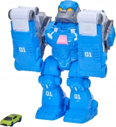 A TEAMSTERZ Robo Gorilla a gorilla témát és a futurisztikus robotot egyetlen lenyűgöző játékká egyesíti. A nagy, kék–szürke test, a feltűnő narancssárga LED szemek és a „01” számok versenyhangulatot kölcsönöznek. A karokban található átlátszó panelek pályaként szolgálnak, amelyeken követheted a mellékelt kisautó útját.