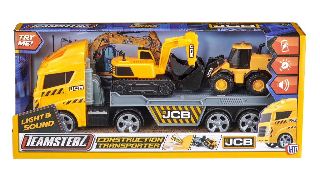 A JCB szállítókészlet valósághű építkezési élményt nyújt a gyerekeknek: sárga szállítójármű villogó fényekkel és motorhangokkal, szabadon gördülő kerekekkel, valamint két gép – egy markológép és egy kerekes rakodó – kézzel működtethető kanalakkal a kreatív játékért és a finommotorika fejlesztéséért.
