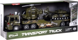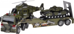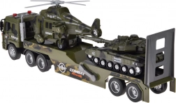 Ez a részletgazdagon kidolgozott katonai szállítókészlet lehetővé teszi a gyerekeknek a technika szállításának megtervezését, az egységek bevetését és a mentőműveletek eljátszását. A kamion lekapcsolható pótkocsija a tankot és a helikoptert is elszállítja, a hátsó felhajtó rámpa pedig megkönnyíti a rakodást. A fülke tetején található fények és hangok tovább fokozzák az izgalmat és a hangulatot.