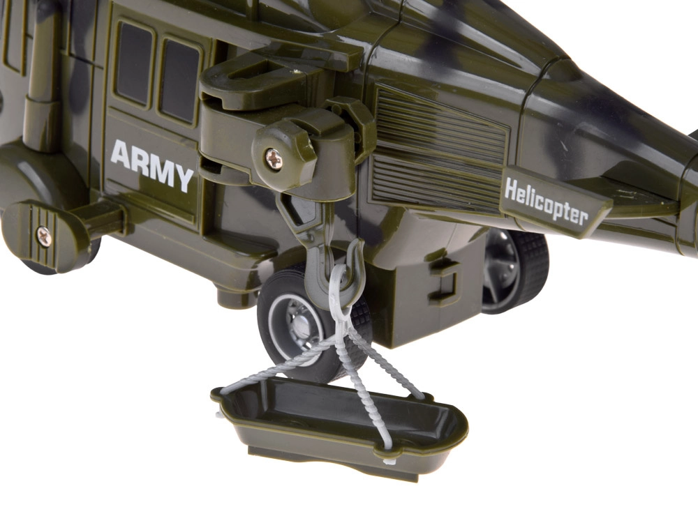 A helikopter forgó rotorral és működő csörlővel, kosárral rendelkezik kisebb tárgyak felemeléséhez. A tank forgatható toronnyal és mozgatható löveggel van felszerelve. Minden modell zöld, katonai terepszínű kivitelben, hadsereg feliratokkal a maximális valósághűségért.