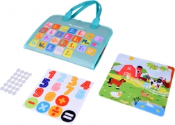A készlet számjegyeket, matematikai jeleket és puha farm témájú kirakót tartalmaz. Ideális az első számoláshoz, a logikus gondolkodás fejlesztéséhez és képek kirakásához.