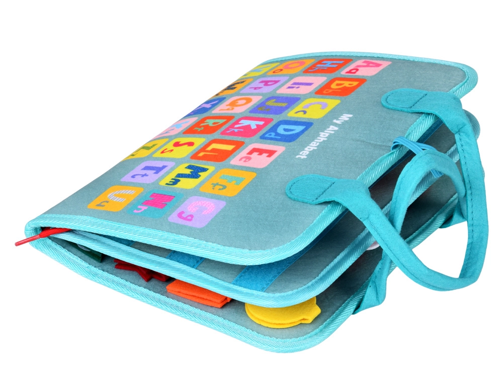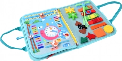 Fedezze fel az okos, Montessori megközelítés által inspirált oktatójátékot. A puha filc könyv gumipántos és gombos zárással tematikus oldalakat rejt, tele mozgatható elemekkel: óra mutatókkal, cipzárak, csatok, cipőfűzők, fogaskerekek, csúszkák, formák és számok. A gyermek természetes módon gyakorolja a finommotorikát, koncentrációt és önállóságot – képernyők nélkül, akár útközben is.