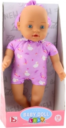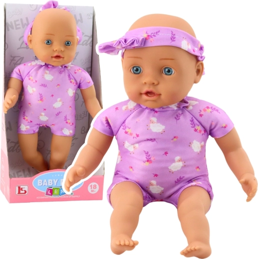 A 31 cm magas, aranyos babababa örömet szerez minden gyermeknek, aki szeret gondoskodni és családosdit játszani. Élethű arcvonásokkal, nagy kék szemekkel és puha testtel rendelkezik, kellemes, virágmintás lila bodyban. Könnyű kézben tartani, biztonságos, és kiválóan alkalmas öltögetésre és utazásra.
