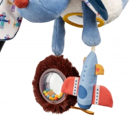 A Lilliputiens aranyos Jules kutyusa függő plüss játék kiságyra, babakocsira és autósülésre. A babát leköti a hasán lévő tükör, a zizegő repülő, a csörgő, színes golyókkal és a különféle textúrák és hangok. A praktikus zsinórnak köszönhetően könnyen fel- és lecsatolható, és 3 hónapos kortól ajánlott.