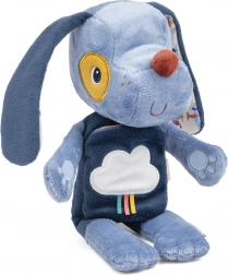 A Jules plüss kutyus ideális játék a finommotorika, az érzékelés és a fantázia fejlesztéséhez. Puha, bársonyos testét jó ölelni, míg a pocakján lévő textil könyvecske egy kis történetet rejt, amely otthon és útközben is lefoglalja a gyermeket. A világító elemek a felhőcskén és a tappancsokon finoman derengenek a sötétben, és biztonságérzetet adnak elalváskor.