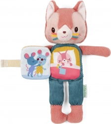 A Jeanne plüss cica gyengédséget és felfedezést hoz a gyerekeknek. Pocakjára rögzített textil könyve színes illusztrációkkal ösztönzi a finommotorikát, a kíváncsiságot és az első történetmesélést. Estére a nyugodt alvásról gondoskodik – a házikó és a fülek sötétben finoman világítanak, megteremtve a megnyugtató hangulatot.