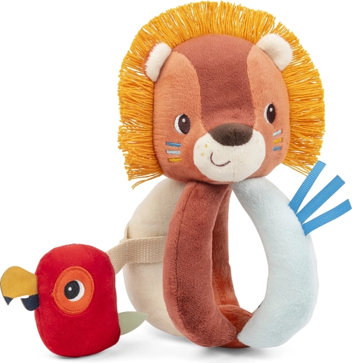 Bájos, puha csörgő a legkisebbeknek Jack oroszlánnal és barátjával, a papagájjal. A gyerekeket különféle textúrák, tevékenységek és finom hangok keveréke vonzza – a csengőtől a zizegő papírig. Könnyen megfogható, stimulálja az érzékeket, és géppel mosható 30 °C-on.