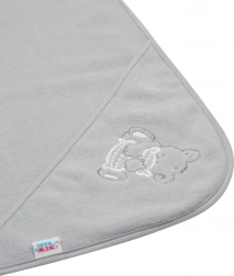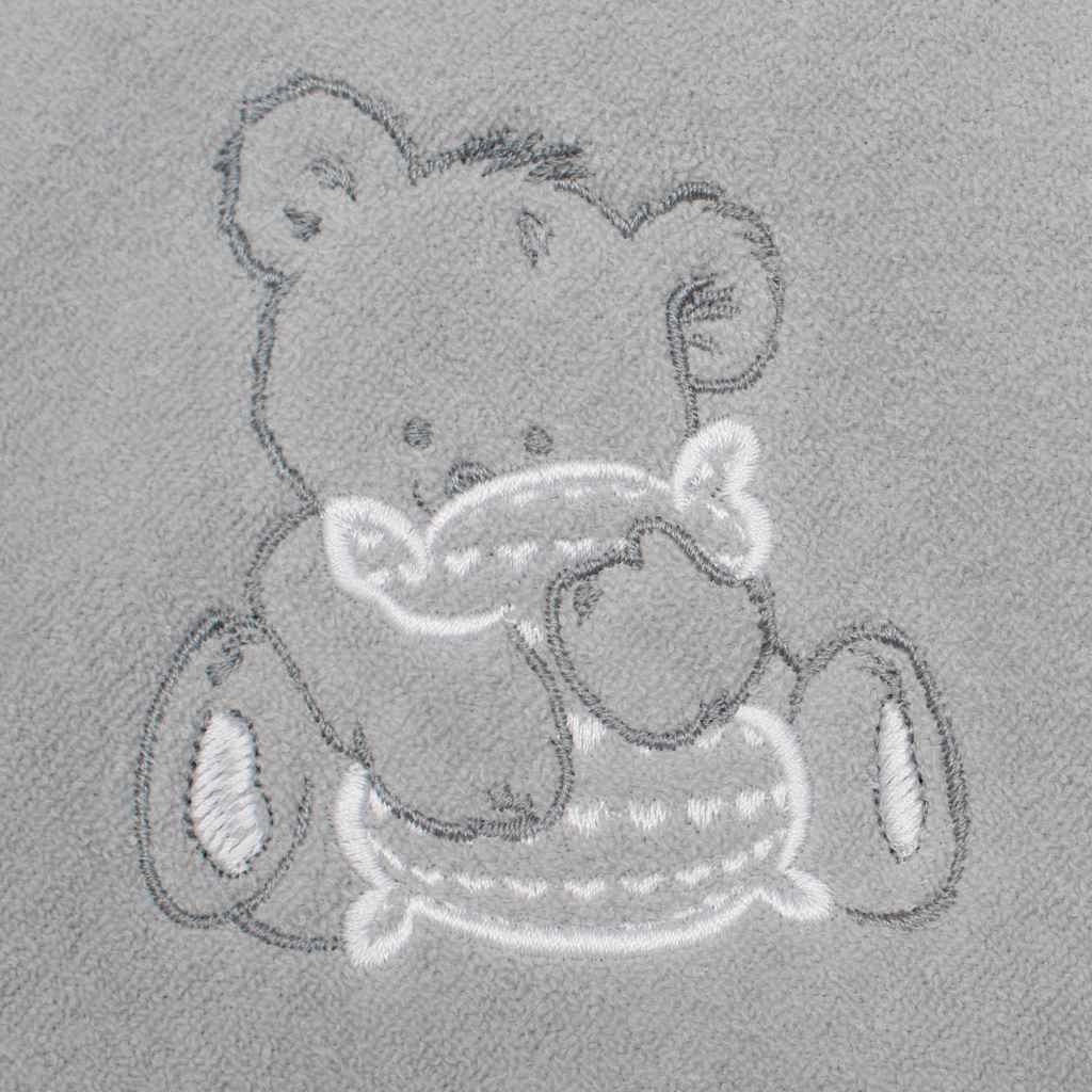 Az anyag kíméletes az érzékeny gyermekbőrhöz, nem irritál és nem ereszti a színét. A szürke kivitel bájos maci hímzéssel univerzális stílust ad minden babakelengyéhez.