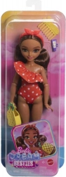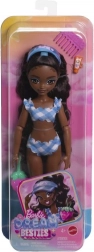 A stílusos BARBIE Dream Besties baba rengeteg nyári hangulatot hoz a játékba. Hosszú, dús haja tökéletes fésüléshez és frizurakészítéshez, állítható karjai és lábai könnyű pózolást tesznek lehetővé, a színes, fodros fürdőruha pedig kiemeli egyedi stílusát. A tengerparti témájú kiegészítők végtelen történetekre inspirálnak a tengernél és otthon is.