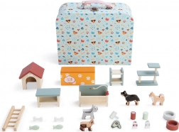 A szett részei különböző fajtájú kutyusok, tálkák, csontok, halacskák, játékok, kutyaház, fekhelyek, „eledel” és sok más miniatűr felszerelés. Kompakt méretének köszönhetően a bőrönd könnyen hordozható, és kiválóan alkalmas kirándulásokra, látogatásokra és nyaralásra.