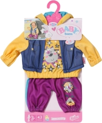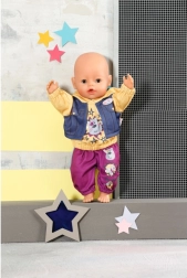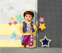 A ruhácska a 43 cm-es BABY born babákhoz készült, könnyű fel- és levenni, és mindennapos játékhoz alkalmas, minőségi anyagokból készült. A készlethez egy rózsaszín vállfa is tartozik, hogy rendezetten lehessen a baba szekrényébe akasztani.