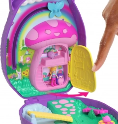 Fedezd fel a zsebedben rejlő varázslatos világot a Polly Pocket Süni család kompakt táskával – hordozható játékszett mikrobabákkal, állatokkal és rengeteg kiegészítővel. Nyisd ki a cuki sünis táskát, és dupla adag móka vár: varázskert és állatbölcsőde. A gyerekek élvezhetik az interaktív elemeket, mint a kis süni „etetése” és „nedves” pelenkája, a mozgó hinta, a gombaházikó, valamint a repülés az égen csúszómechanizmussal.