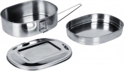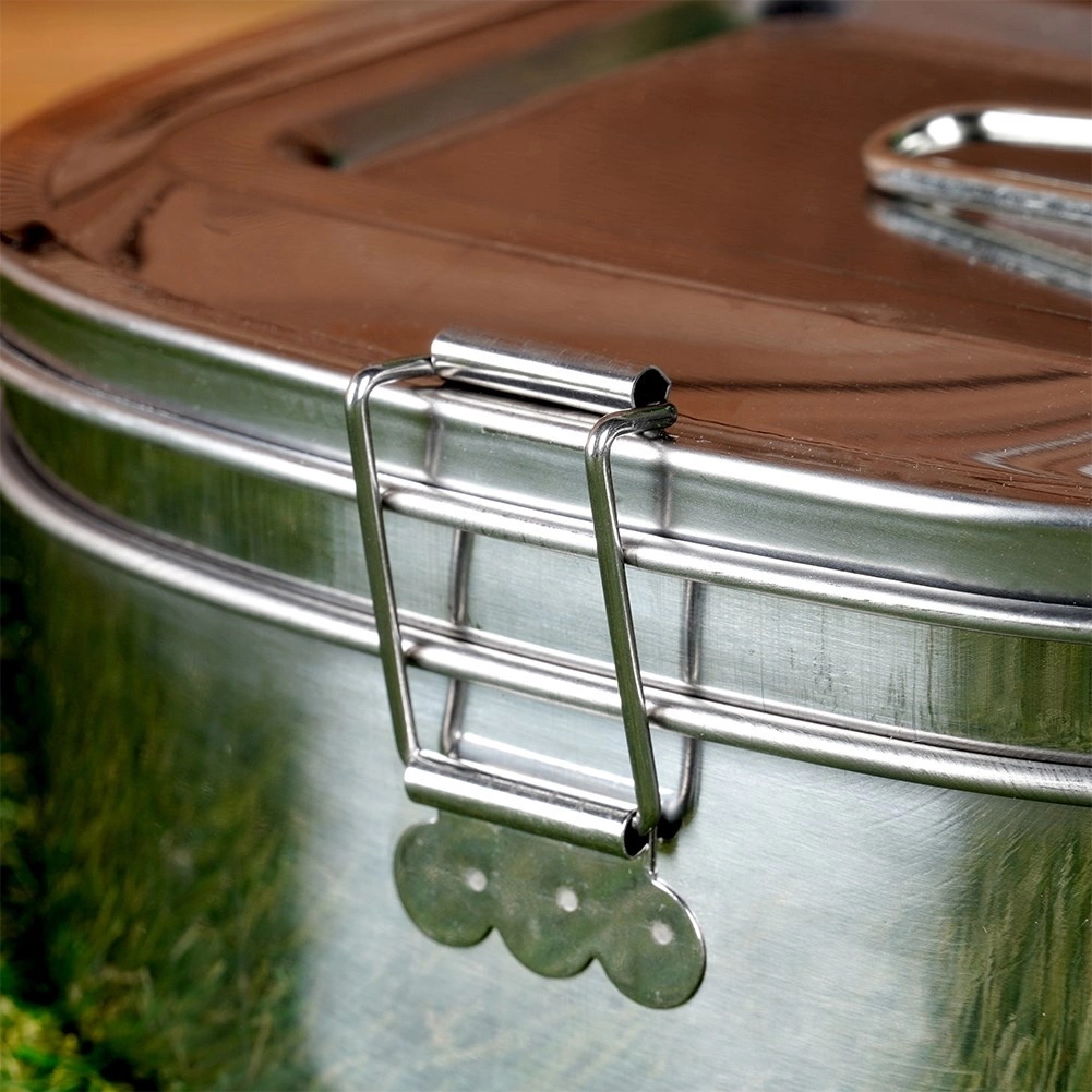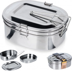 Ez a minőségi rozsdamentes acélból készült kompakt készlet kiváló megoldás mindennapi ebédekhez és outdoor kalandokhoz. A 900 ml-es fő tartály bőséges főételhez, a 350 ml-es betét ideális köretnek, uzsonnának vagy desszertnek. Zárás után stabil egységet alkot megbízható kapcsokkal és lehajtható fogantyúval a könnyű hordozhatóságért.