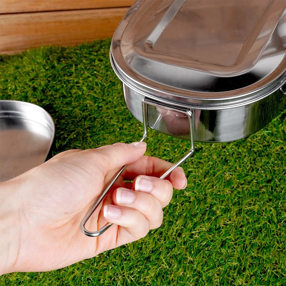 A strapabíró kialakításnak köszönhetően a menázsiás tartós, élelmiszer-biztonságos és egyszerűen tisztítható. Remek választás túrázáshoz, kempingezéshez, iskolába és munkába. Figyelmeztetés: az edények nem alkalmasak ételek melegítésére és nem 100%-ban cseppmentesek (tömítés nélkül) – folyékony ételeket függőleges helyzetben szállítson.