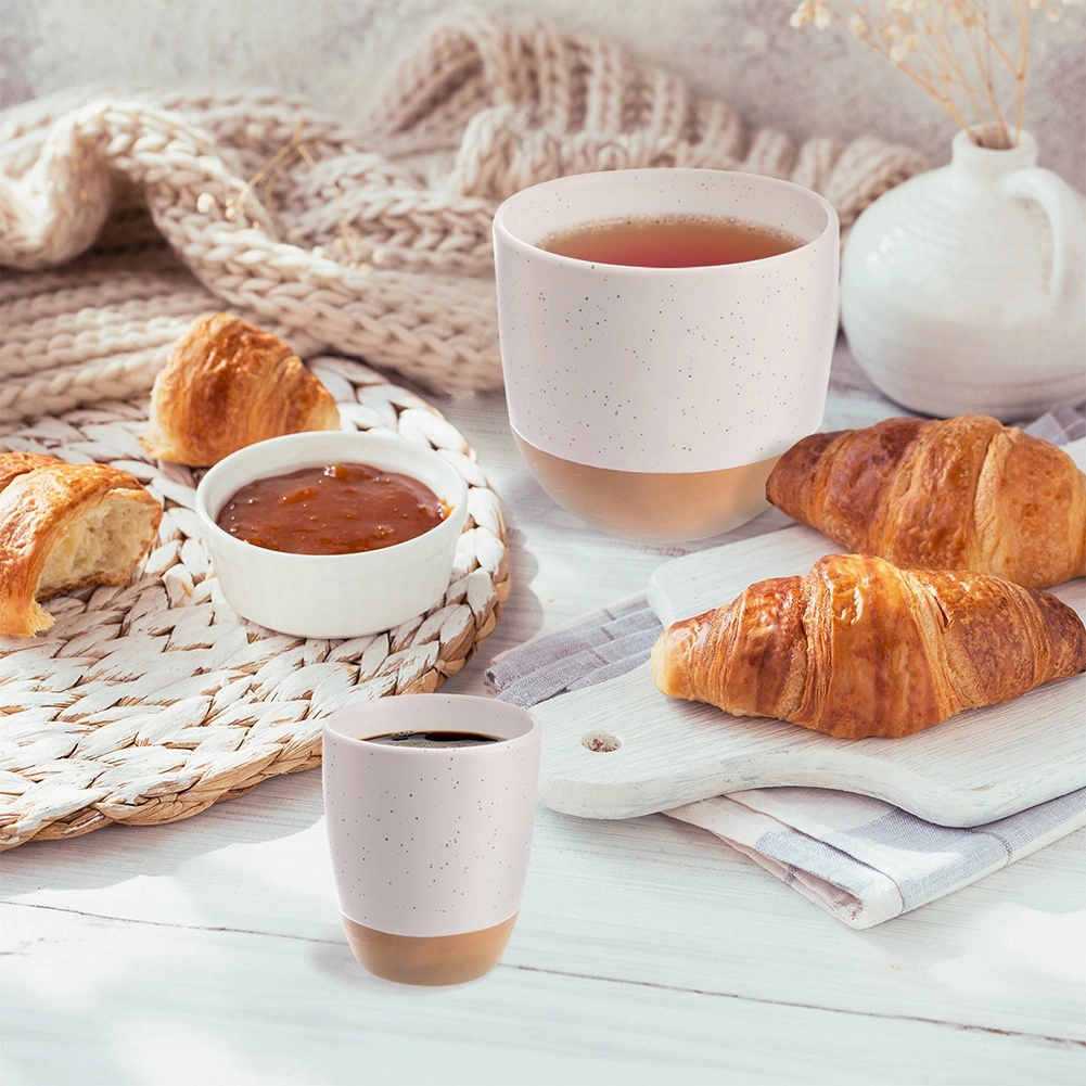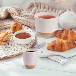 Élvezd kedvenc eszpresszódat stílusosan. Ez a 90 ml-es kis csésze időtlen, minimalista megjelenéssel bír: a finoman pöttyös, fehér, mázas felső rész fokozatosan megy át a természetes, mázatlan kőedénybe. A vastagabb falak jobban tartják az ital hőmérsékletét, a kényelmes forma pedig remekül kézre áll.